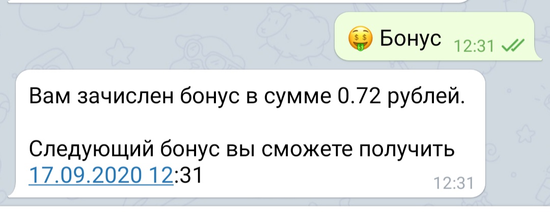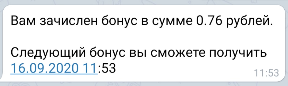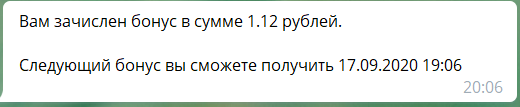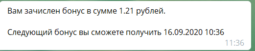 Второй бонус ежедневно через телеграмм-бот - очень удобно и приятно!