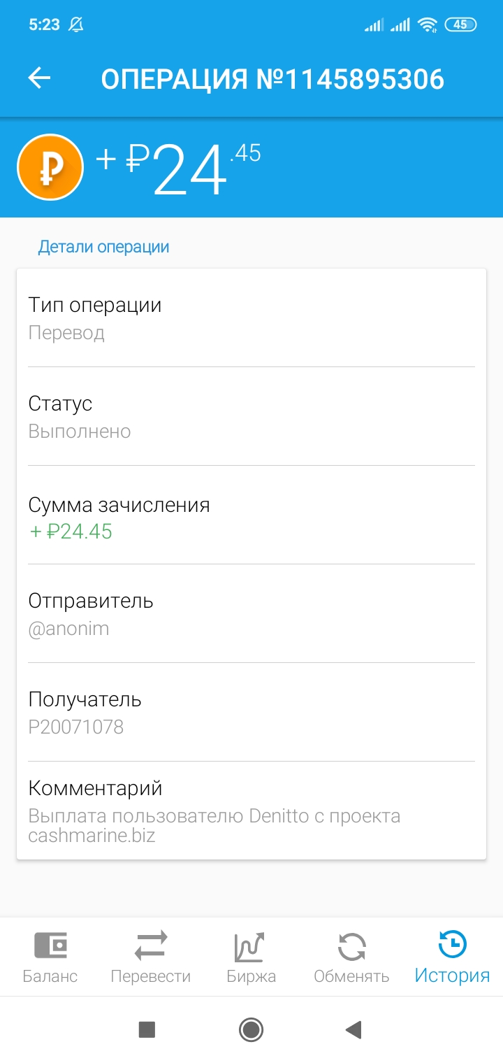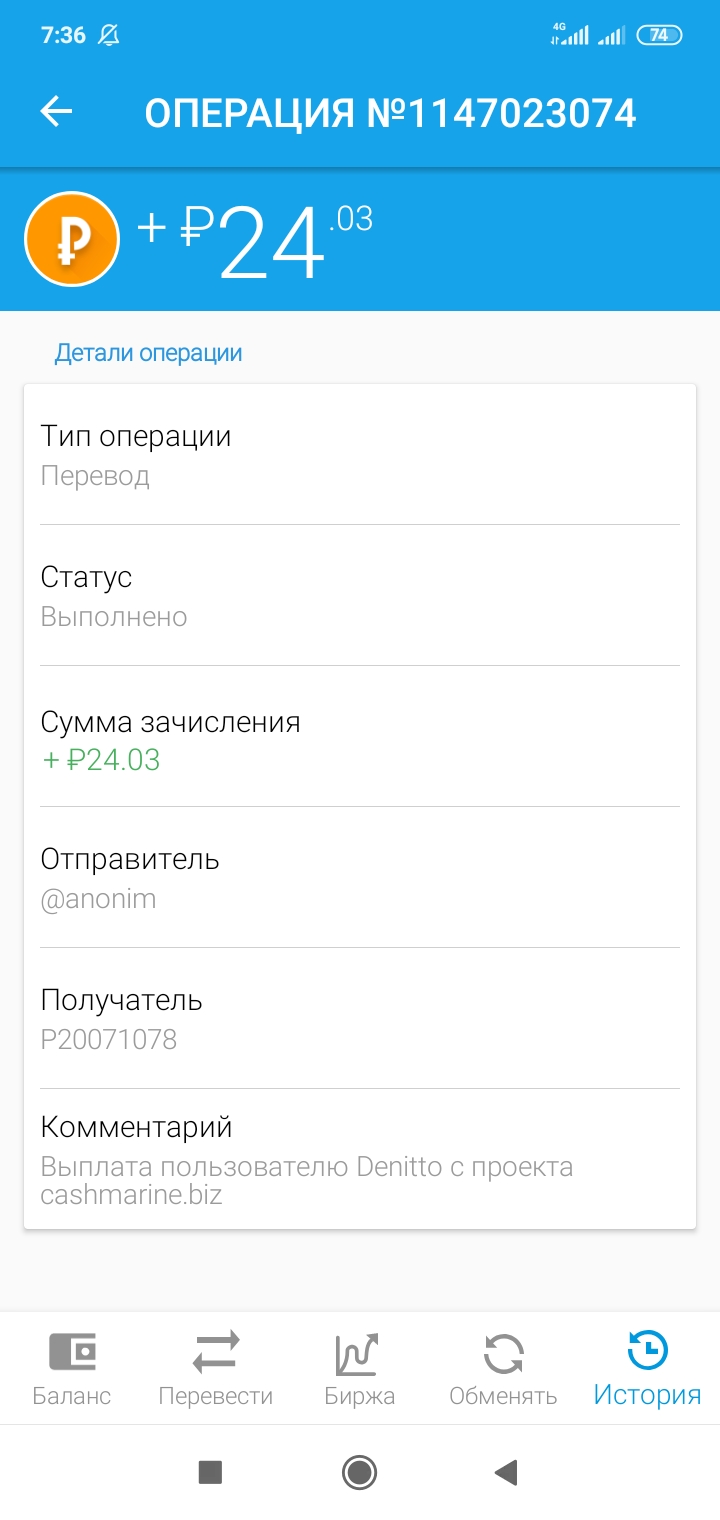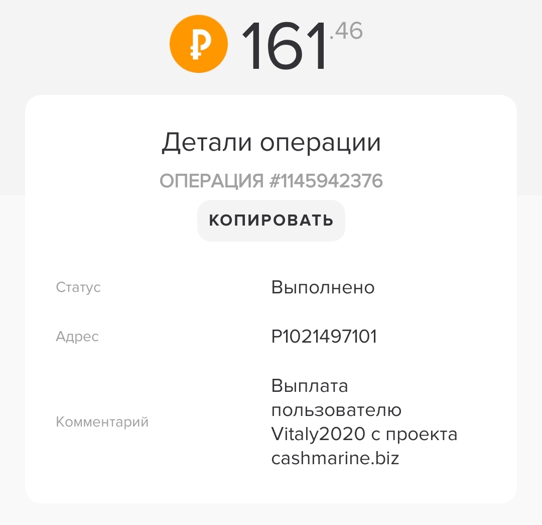 Comment: Amount: 80.00 RUB Выплата с проекта cashmarine.biz