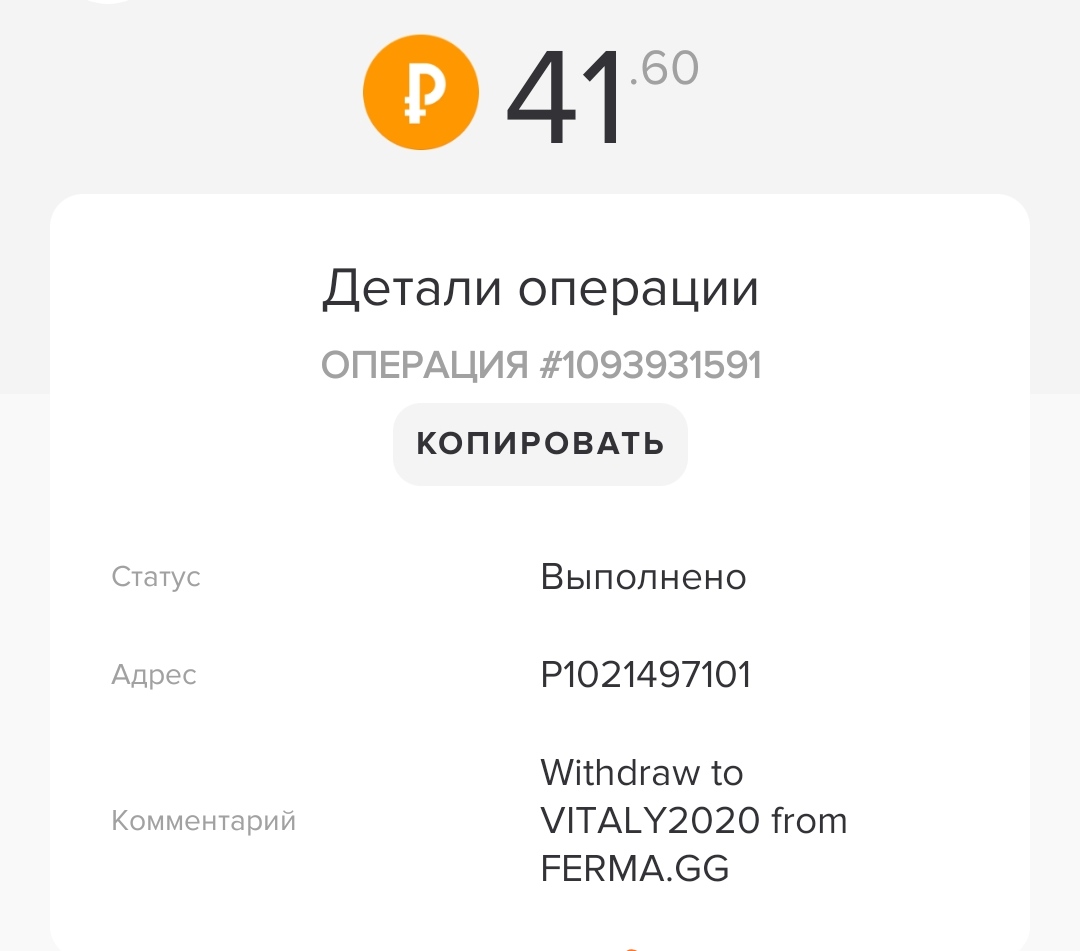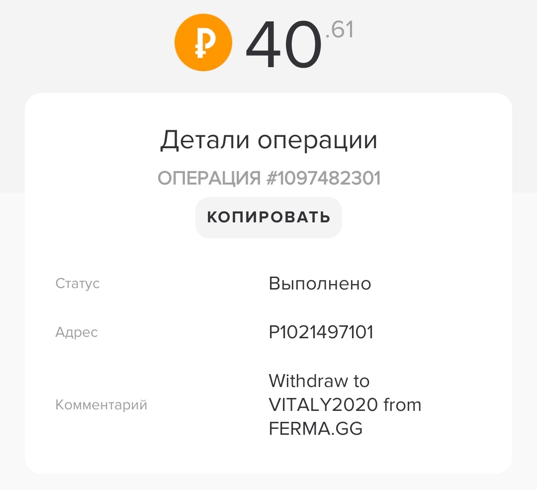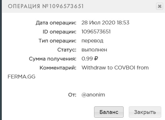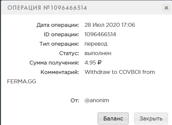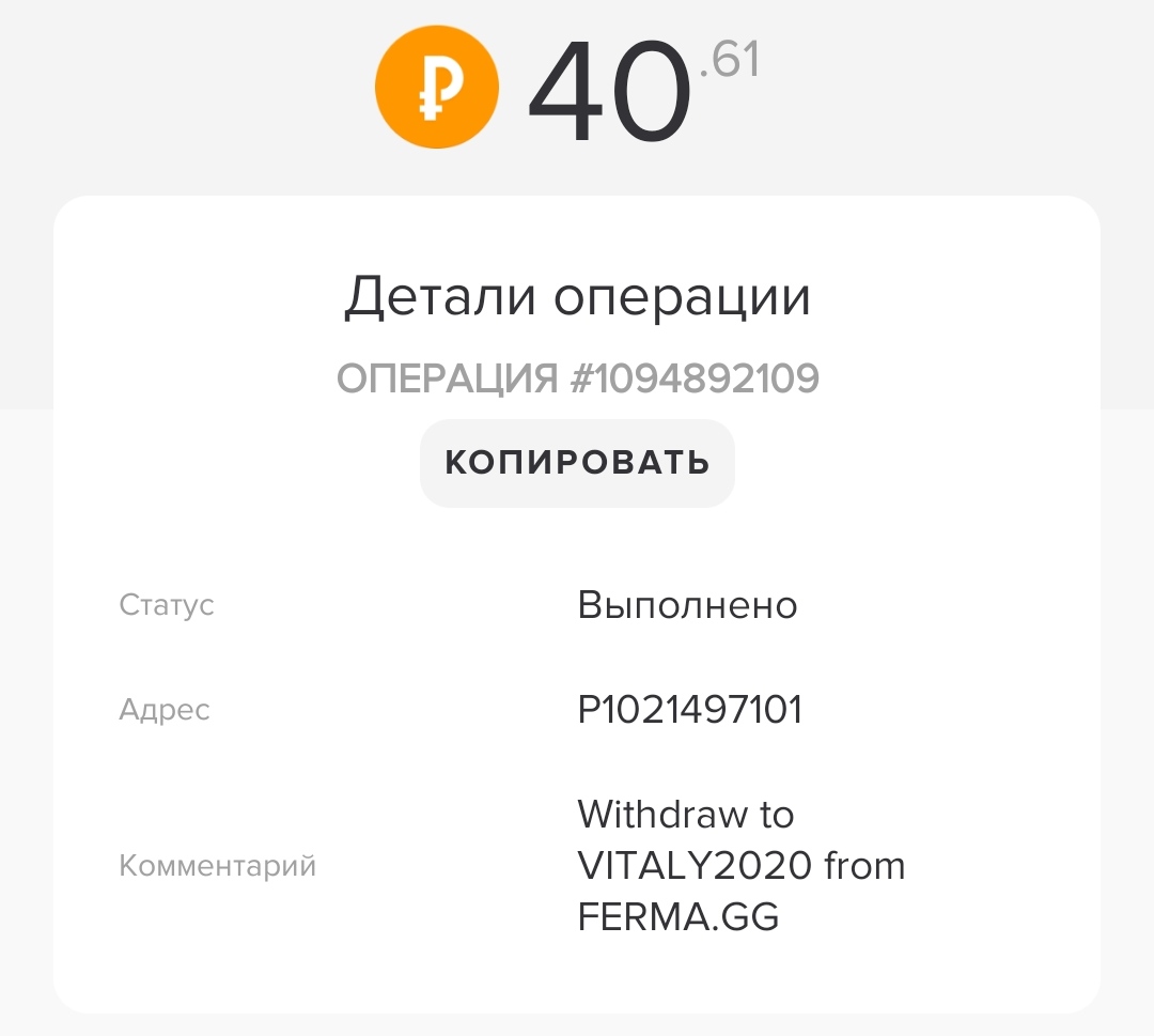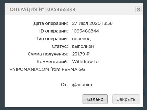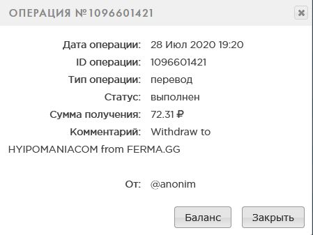 Комментарий: Выплата пользователю nazarko88 с проекта ferma.gg