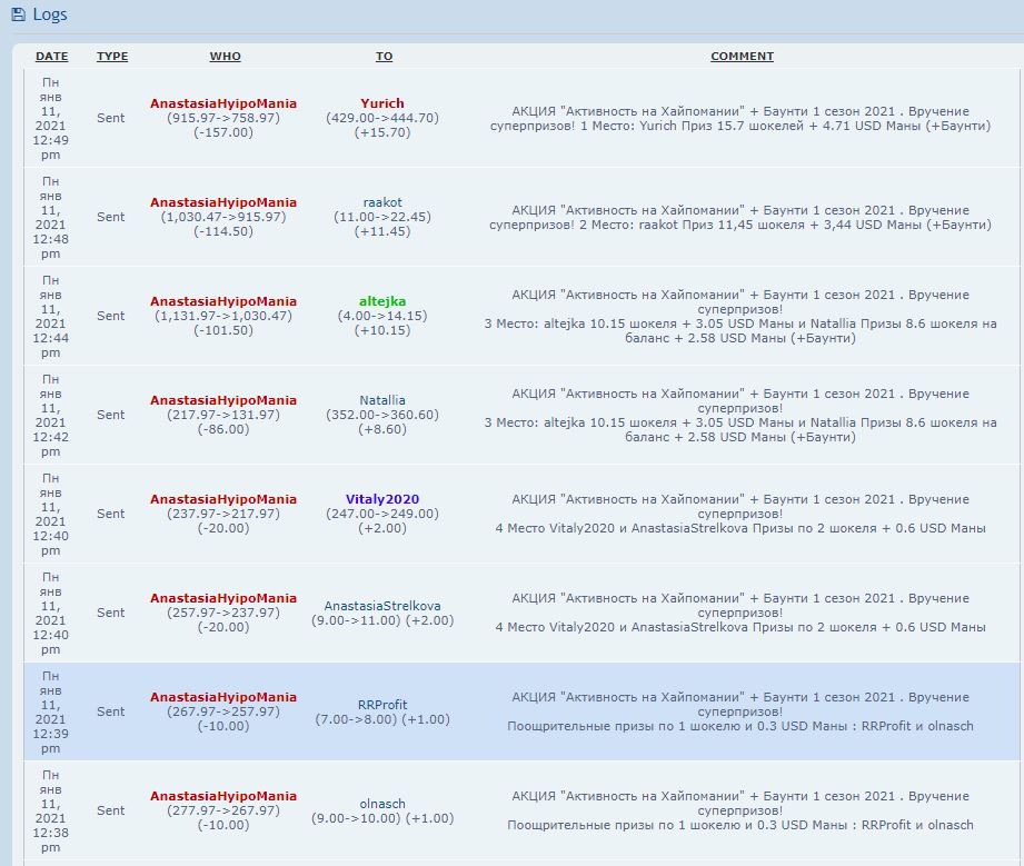 🚀 Выдача финальных бонусов по "Активности на Хайпомании" + Баунти 4 сезон 2021 . ( период 00:00 8.2 - 23-59 21.2.2021) для всех кто сдал отчеты: