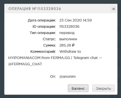Withdraw to EVGENY80 from FERMA.GG | Telegram chat — @FERMAGG_CHAT