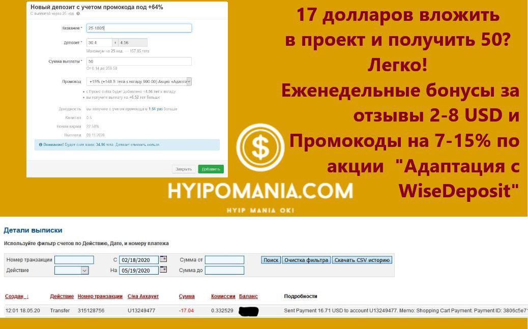 3. Знакомится с азами заработка в инвестиционных проектах на примере относительно безопасного проекта WiseDeposit , работающего больше 3 лет.