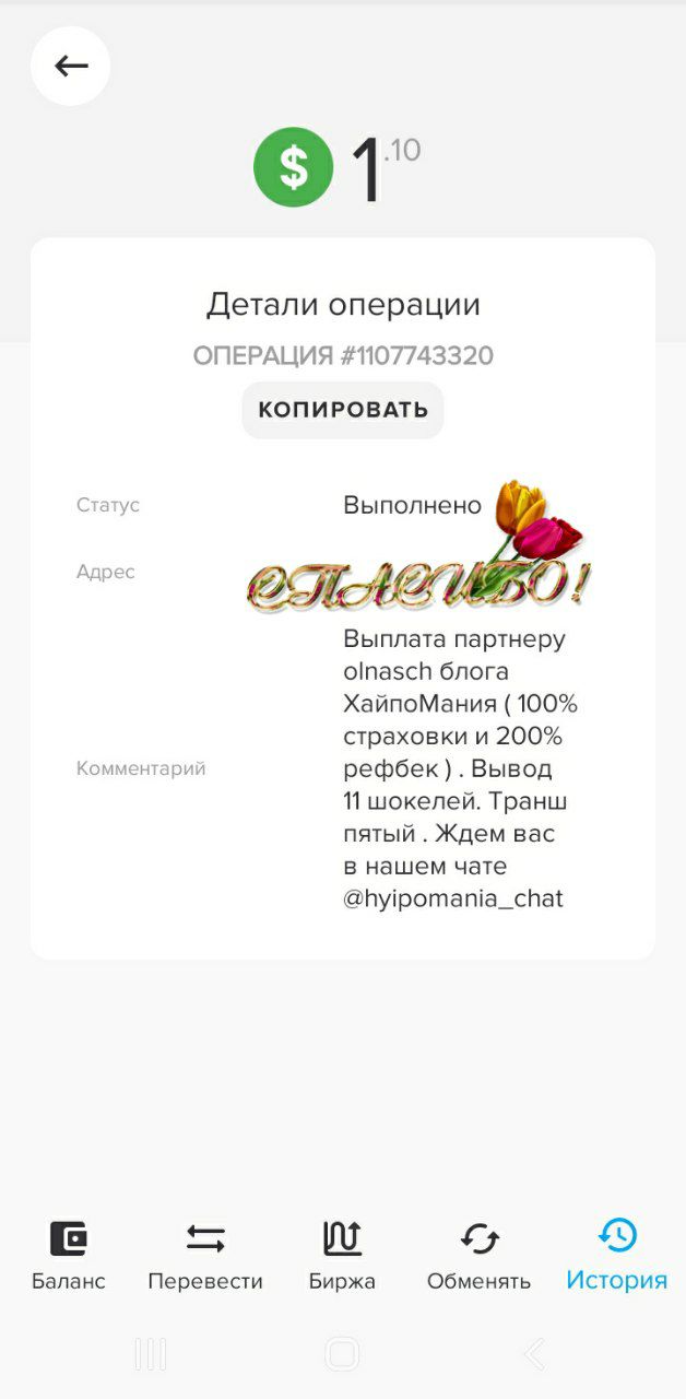 Огромное спасибо блогу Хайпомания за очередной бонус за активность 5 шокелей, которые соответствуют 5$.