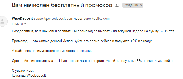 Re: WiseDeposit: 200% дохода! Бонус блога: 20% Страховка 100%