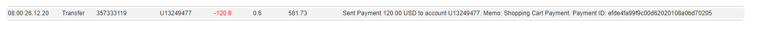 24.12.20 05:58 Received Payment 50.1 USD from account U13249477 to account U77ХХХХХ.