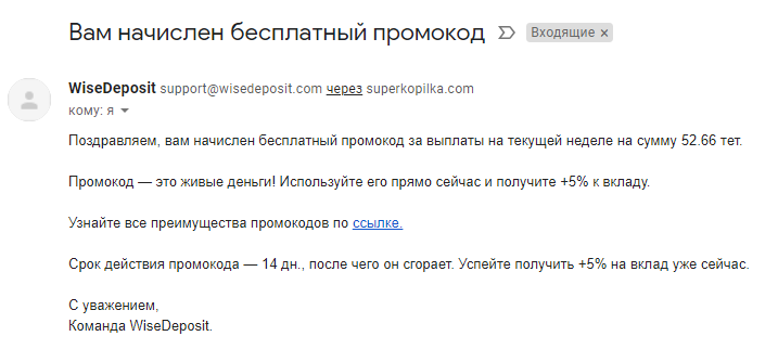 🔥 Получила новые промокоды по программе "Верни деньги" от WiseDeposit и HyipoMania!!!