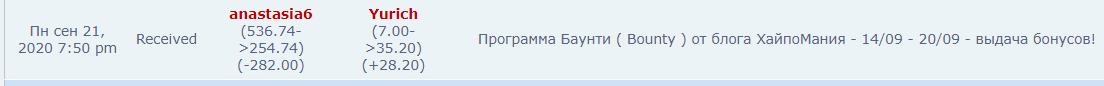 Пн окт 05, 2020 11:17 pm Received Yurich +24.50 Программа Баунти ( Bounty ) от блога ХайпоМания