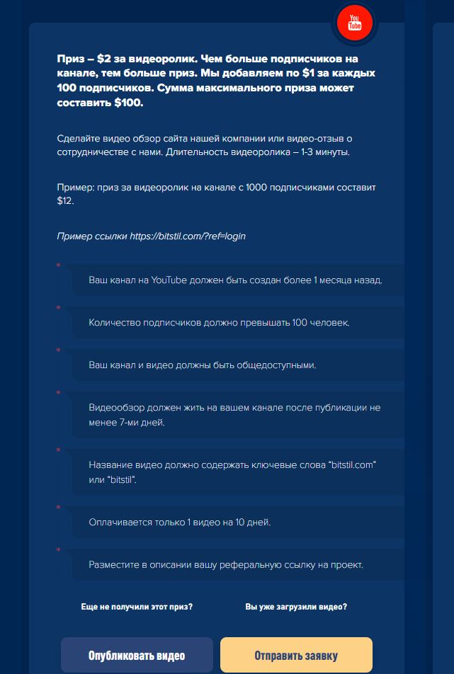 Призы от BITSTIL – это возможность получить в подарок до $100, выполняя простые действия для популяризации проекта.