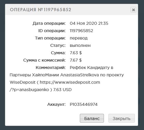 2. Баланс внутреннего кошелька блога ХайпоМания ( Ваш ник на блоге )