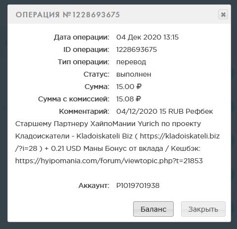 а также на баланс внутреннего кошелька блога ХайпоМания с возможностью умножения средств на 10% в месяц в Банке блога.