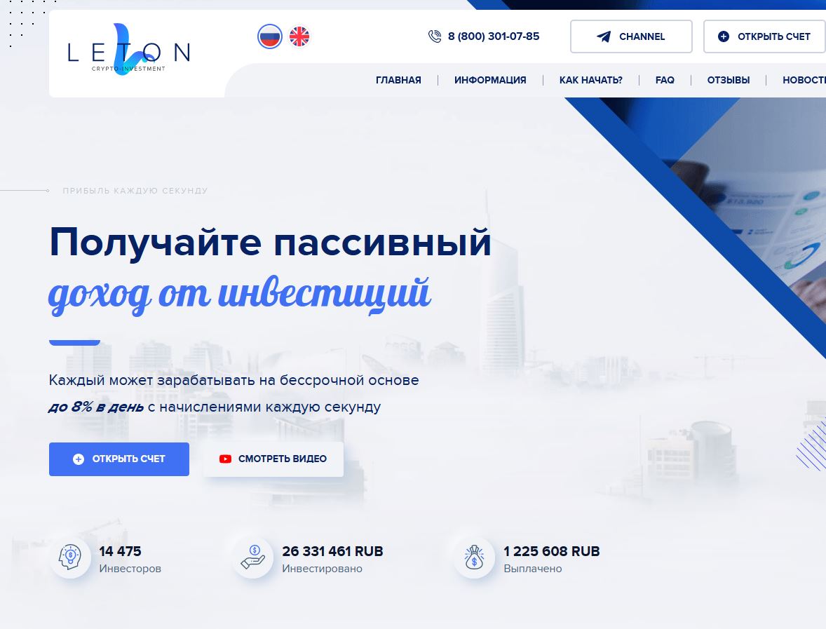 Проект LETON IO - обзор от партнера ХайпоМании Alex330
