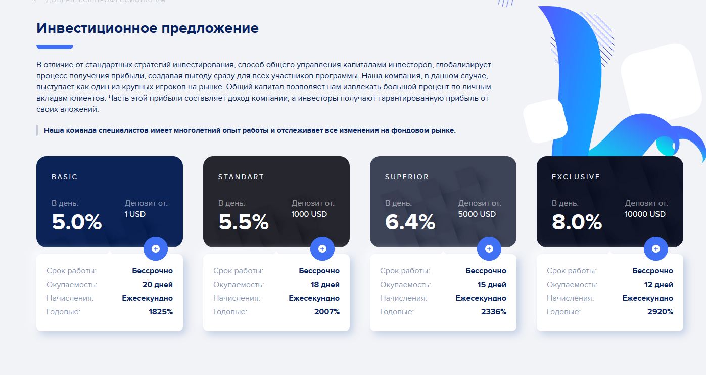 EXCLUSIVE. Вклад от 10 000 долларов бессрочно. Доходность 8% в сутки или 240% в месяц. Депозит включен в ежесекундные начисления. Безубыток через 12 дней.