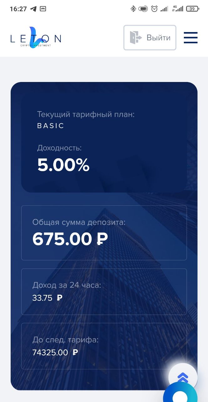 Re: Проект LETON IO. Доход от 5% в сутки. Рефбек 100%