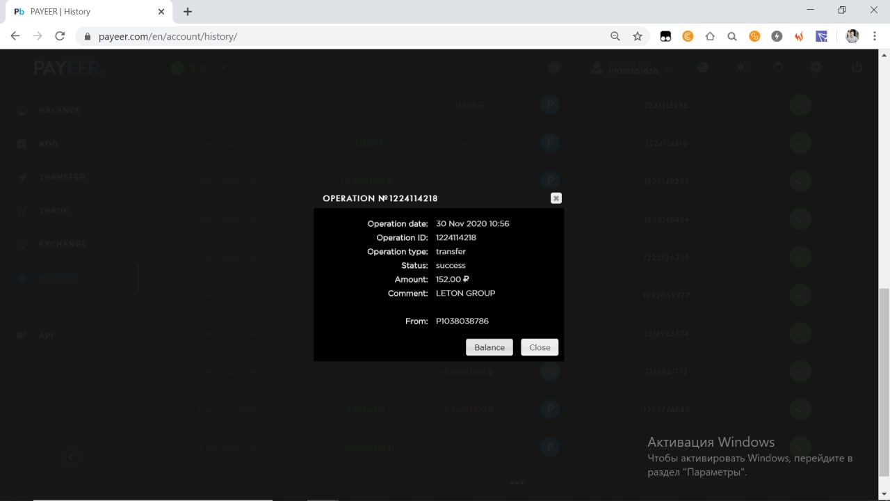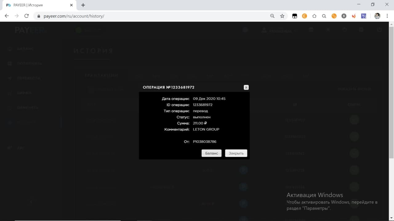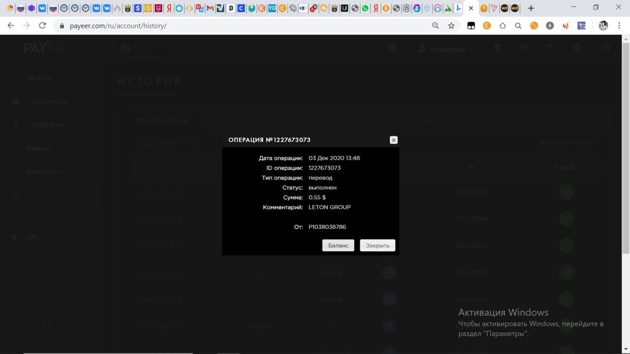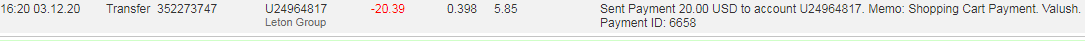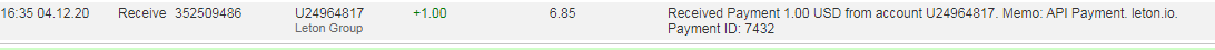 The amount of 0.43 USD has been deposited to your account. Accounts: U24964817->U22268***. Memo: API Payment. leton.io.. Date: 12:47 02.12.20. Batch: 351977081.