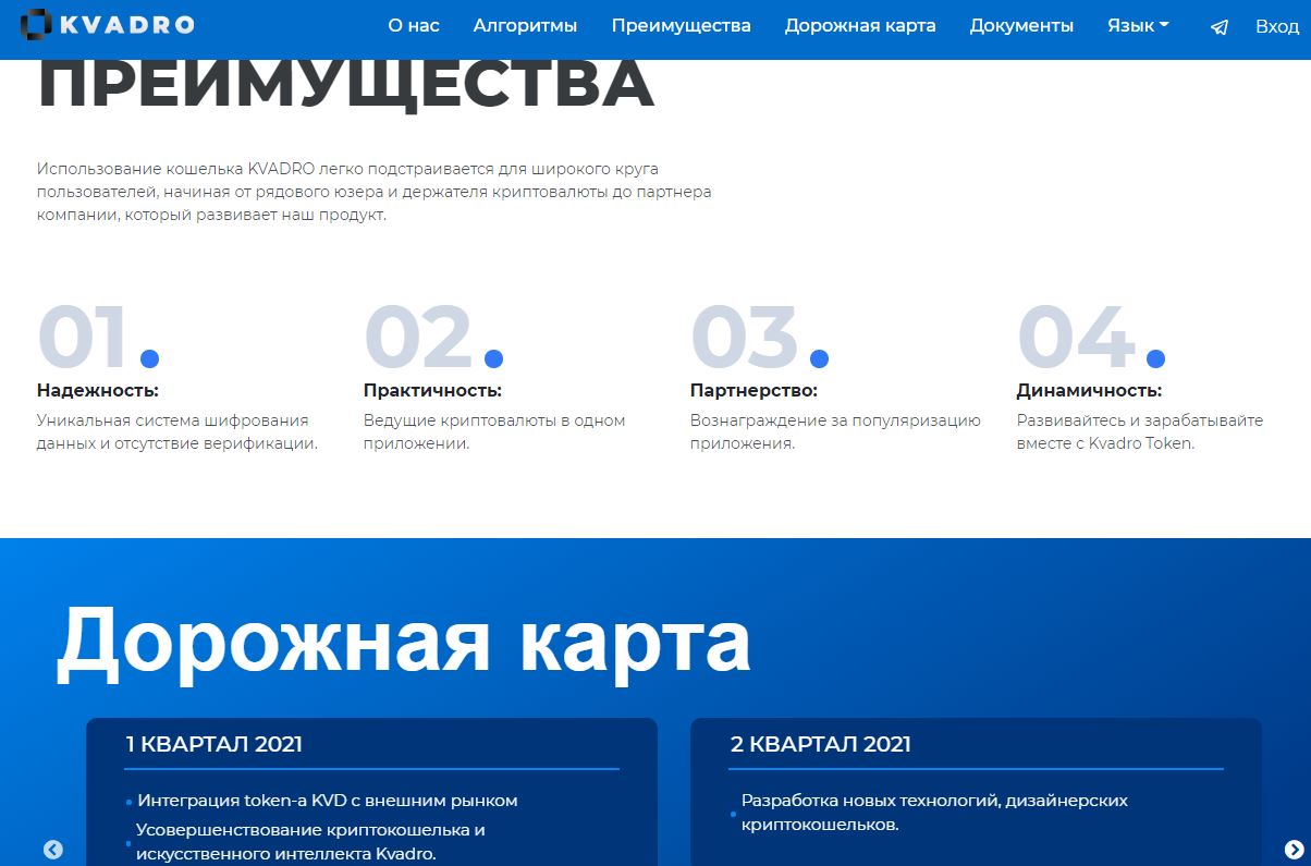 На часть внесенной суммы приобретается KVADRO token, который растет за счет капитализации кошелька. Иными словами, чем больше пользователей активирует это приложение, тем дороже будет монета, и выше ваш доход.
