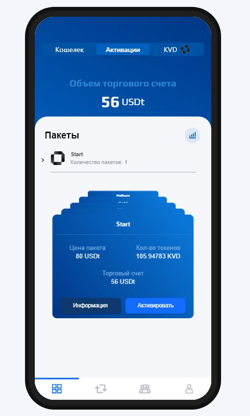 Plan 1 ( 80$ ) 56$ загружаются на биржу: еженедельный доход около 2,8$. На 24$ приобретается KVADRO token-рост до 96$ .