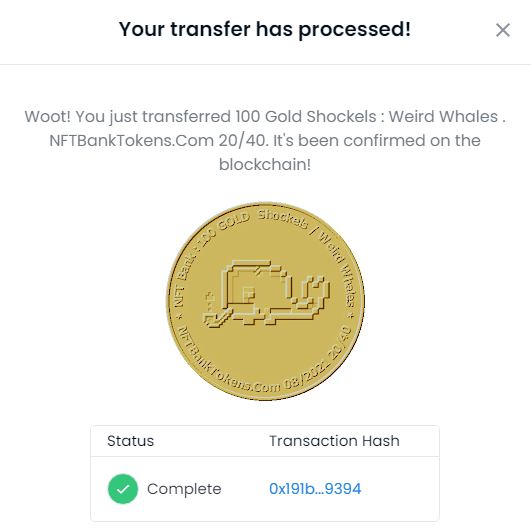 100 Gold Shockels: Weird Whales. NFTBankTokens.com 20/40 Nominal value 100 USD